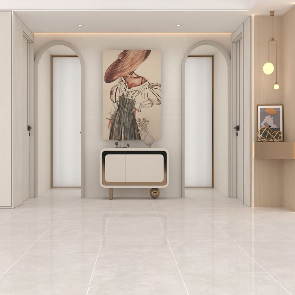 Bề mặt men bóng được mài bóng toàn phần (full polish) giúp gạch phản chiếu ánh sáng nhẹ nhàng, lan tỏa khắp không gian như một vệt nắng xuyên qua tán cây. Nhờ đó, căn phòng luôn tràn ngập ánh sáng tự nhiên, tạo cảm giác rộng rãi, thoáng đãng và đầy sinh khí. Hiệu ứng bóng kính không chỉ làm tăng vẻ sang trọng mà còn dễ dàng làm sạch, giữ cho mặt sàn luôn tươi mới như ngày đầu.